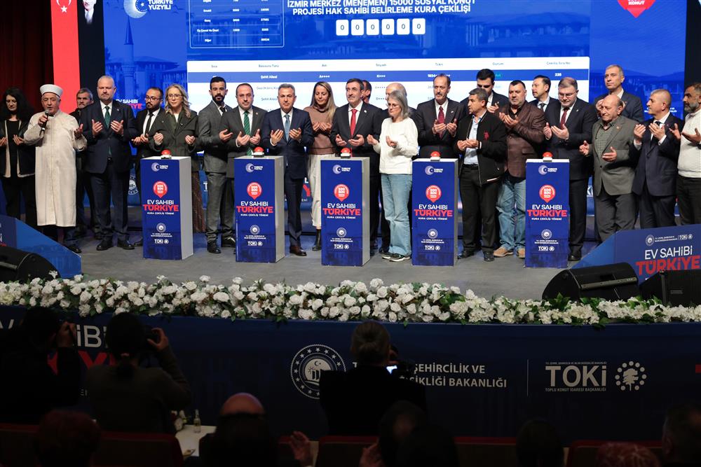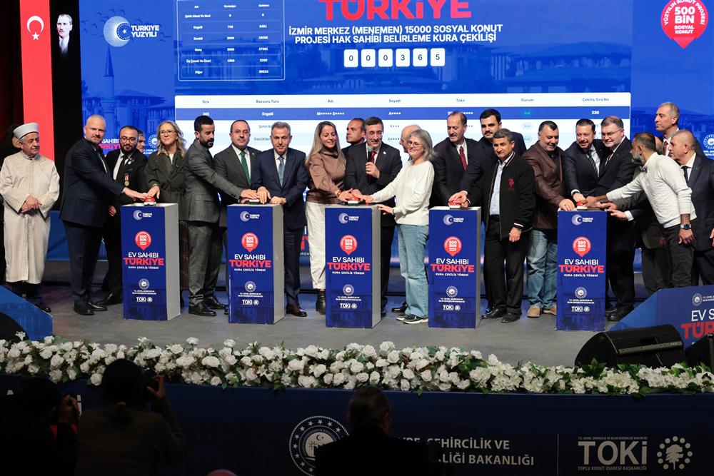 Cumhurbaşkanı Yardımcımız Sn. Cevdet YILMAZ, İzmir Valimiz Sn. Dr. Süleyman ELBAN, Sn. Vekillerimiz, Sn. Devlet Büyüklerimiz ve Değerli Vatandaşlarımızın katılımlarıyla Yüzyılın Konut Projesi 500 Bin Sosyal Konut'un İzmir İli Kurası düzenlenen tören ile 6 Mart 2026 tarihinde Bornova Kültür ve Sanat Merkezimiz Necdet AYDIN sahnesinde çekildi.